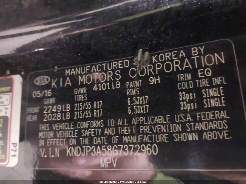 2016 KIA SOUL 2016 року Бензин, 2.0, Передній привід, vin - KNDJP3A58G7372960 з США