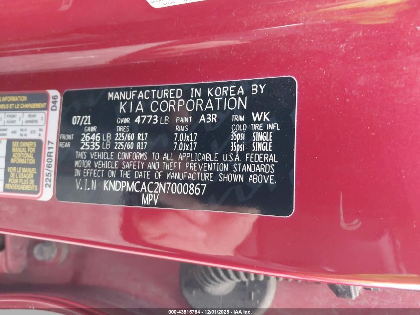 Колір ЧервонийЦиліндри 4Привід Повний привідVIN KNDPMCAC2N7000867Стан Заводиться та їде (перевірено)Ушкодження Передня або задня AutoRIA