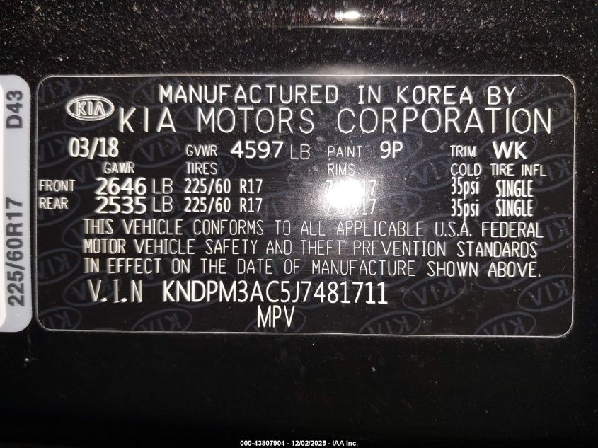 2018 KIA SPORTAGE 2018 року Бензин, 2.4, Передній привід, vin - KNDPM3AC5J7481711 з США