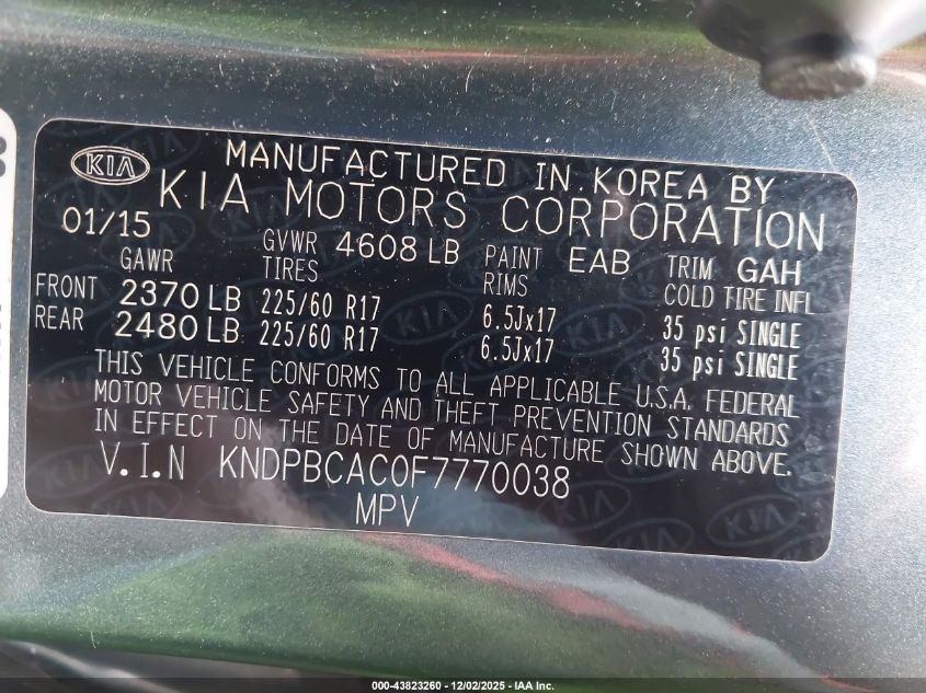 2015 KIA SPORTAGE 2015 року Бензин, 2.4, Повний привід, vin - KNDPBCAC0F7770038 з США