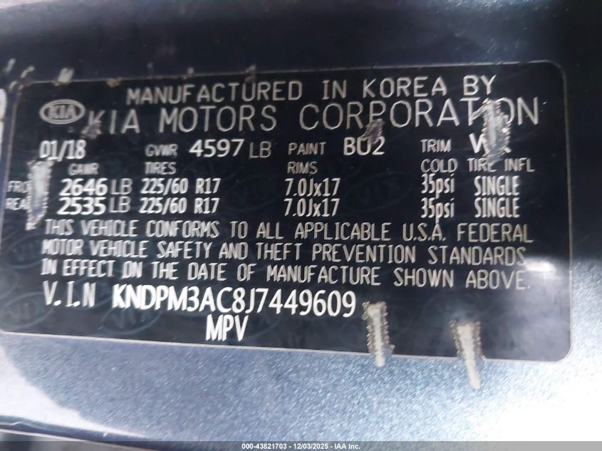 2018 KIA SPORTAGE 2018 року Бензин, 2.4, Передній привід, vin - KNDPM3AC8J7449609 з США