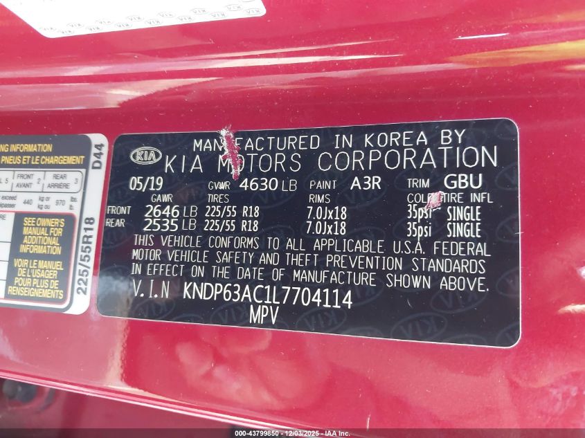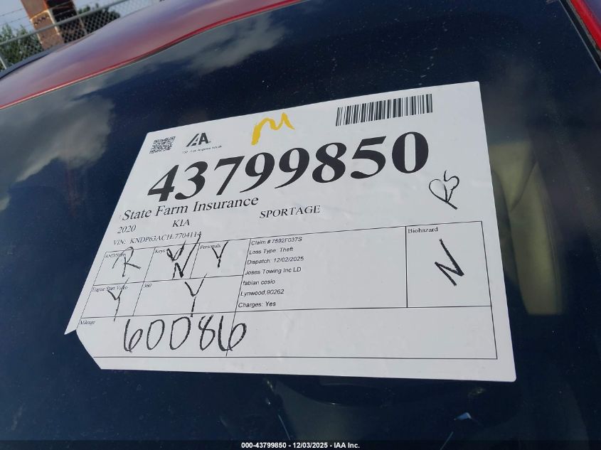 2020 KIA SPORTAGE 2020 року Бензин, 2.4, Передній привід, vin - KNDP63AC1L7704114 з США