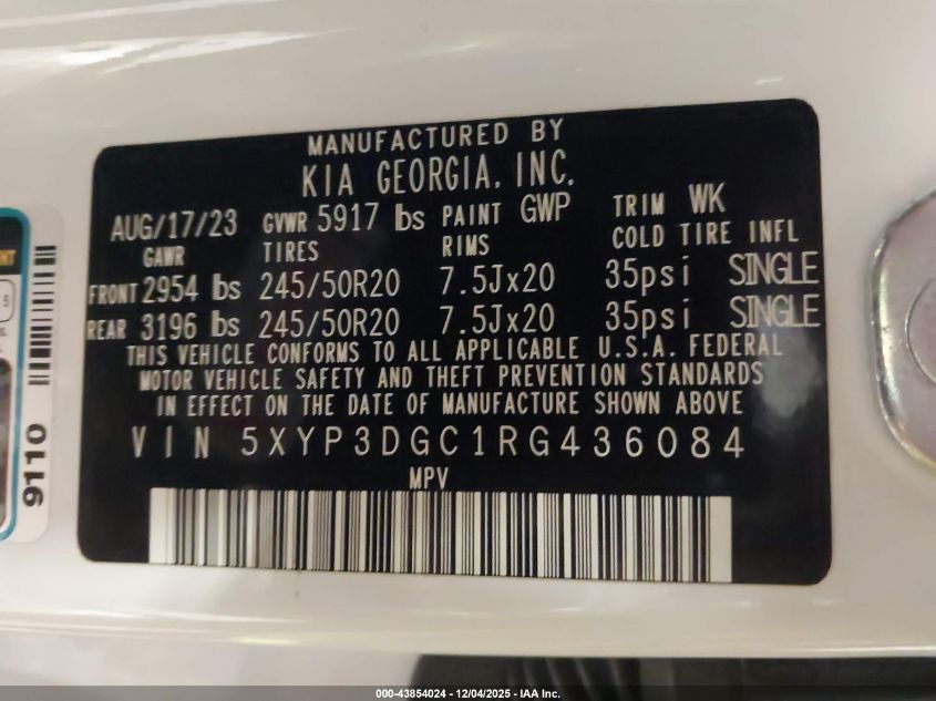 2024 KIA TELLURIDE 2024 року Бензин, 3.8, Повний привід, vin - 5XYP3DGC1RG436084 з США