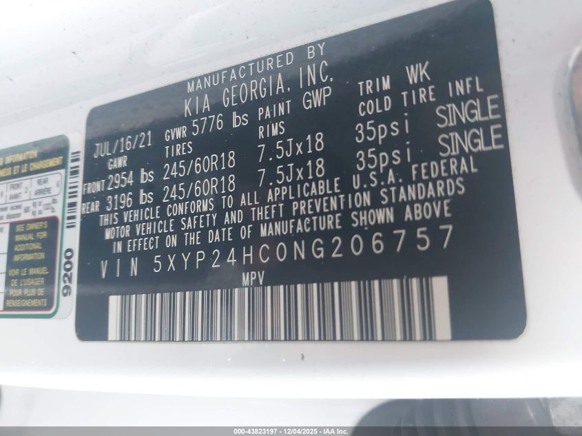 2022 KIA TELLURIDE 2022 року Бензин, 3.8, Передній привід, vin - 5XYP24HC0NG206757 з США