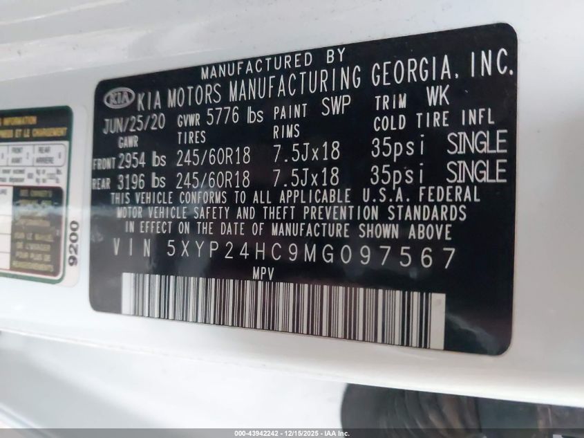 2021 KIA TELLURIDE 2021 року Бензин, 3.8, Передній привід, vin - 5XYP24HC9MG097567 з США