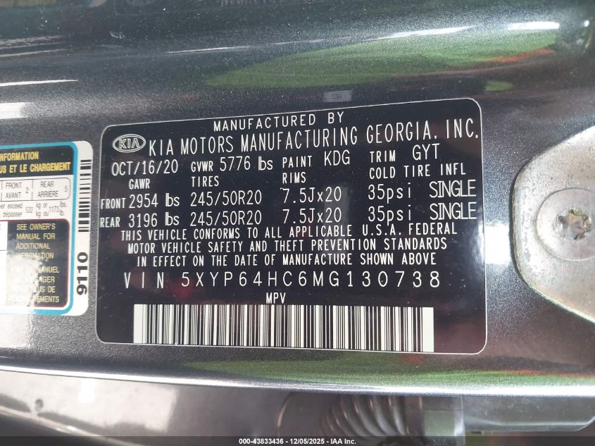 2021 KIA TELLURIDE 2021 року Бензин, 3.8, Передній привід, vin - 5XYP64HC6MG130738 з США