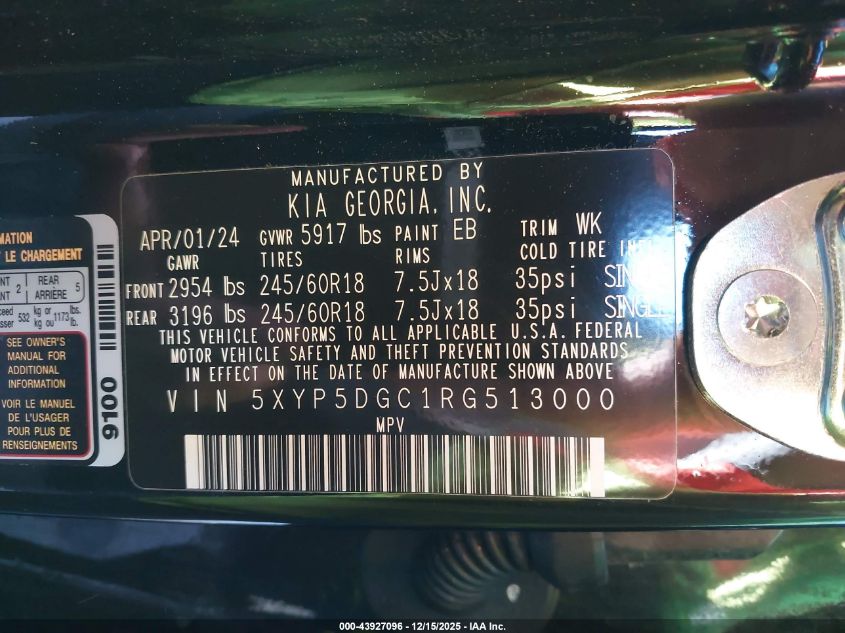 2024 KIA TELLURIDE 2024 року Бензин, 3.8, Повний привід, vin - 5XYP5DGC1RG513000 з США
