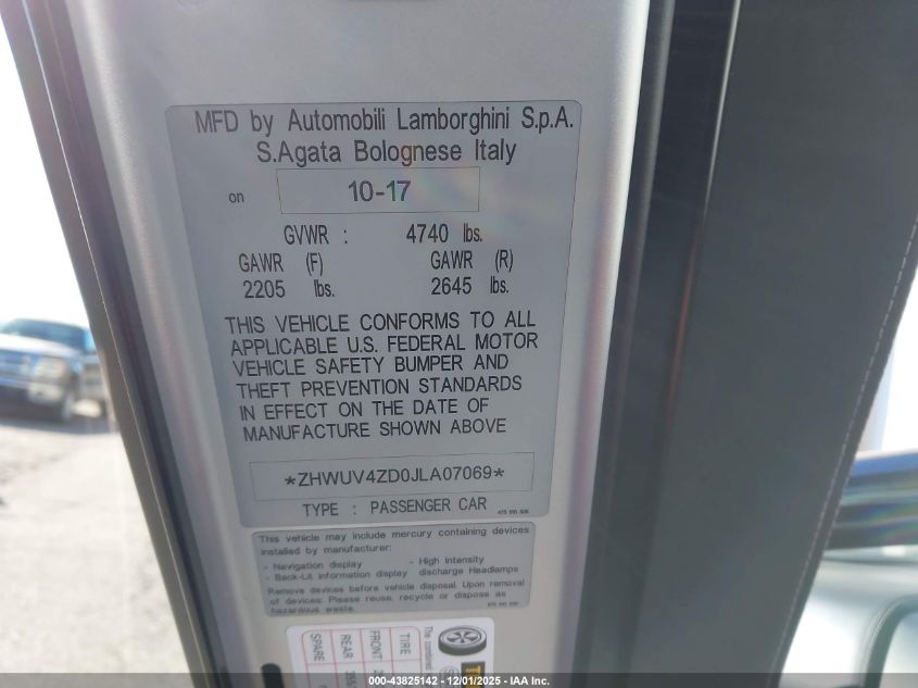 2018 LAMBORGHINI AVENTADOR 2018 року Бензин, 6.5, Повний привід, vin - ZHWUV4ZD0JLA07069 з США