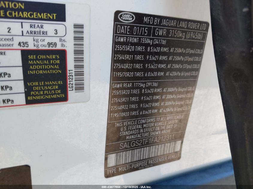 2015 LAND ROVER RANGE ROVER SUPERCHARGED