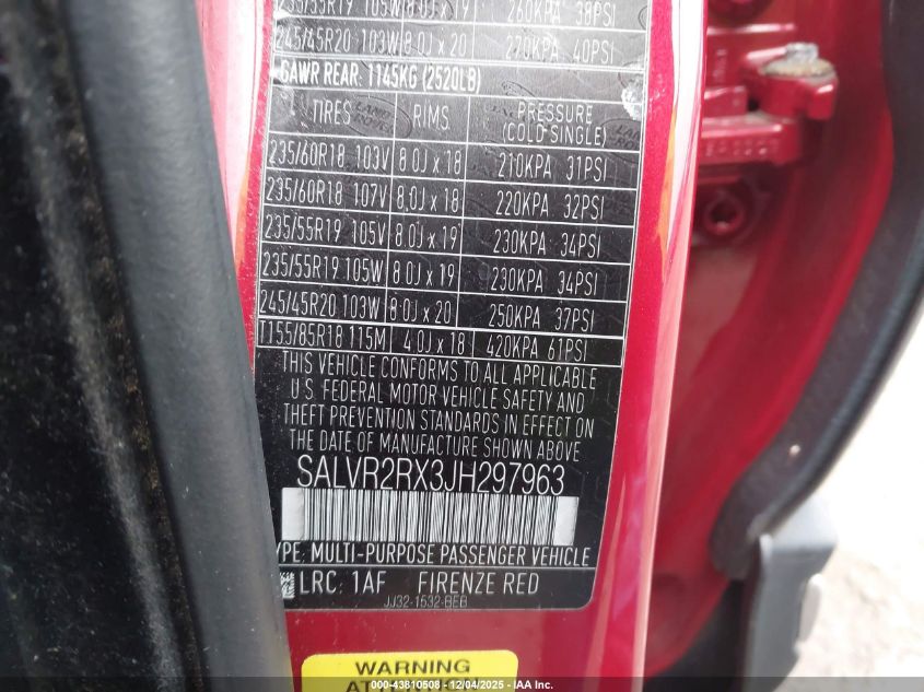 2018 LAND ROVER RANGE ROVER EVOQUE 2018 року Бензин, 2.0, Повний привід, vin - SALVR2RX3JH297963 з США