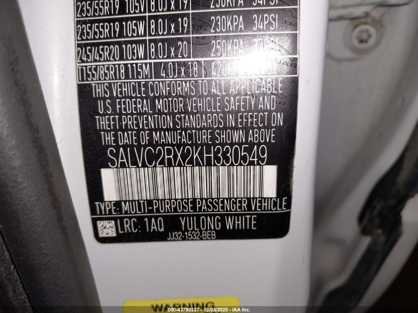 2019 LAND ROVER RANGE ROVER EVOQUE 2019 року Бензин, 2.0, Повний привід, vin - SALVC2RX2KH330549 з США