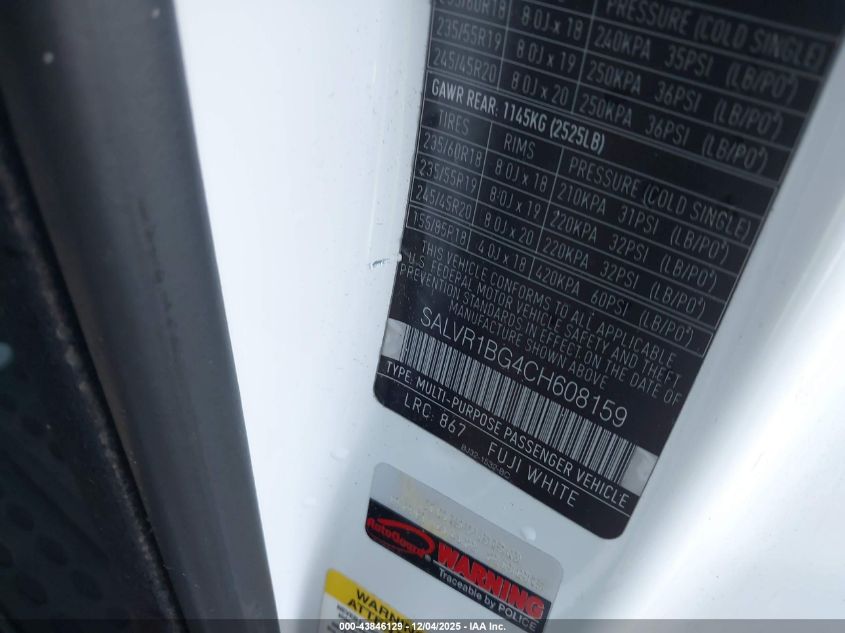 Колір БілийЦиліндри 4Привід Повний привідVIN SALVR1BG4CH608159Стан Заводиться та їде (перевірено)Ушкодження Передня або задня AutoRIA