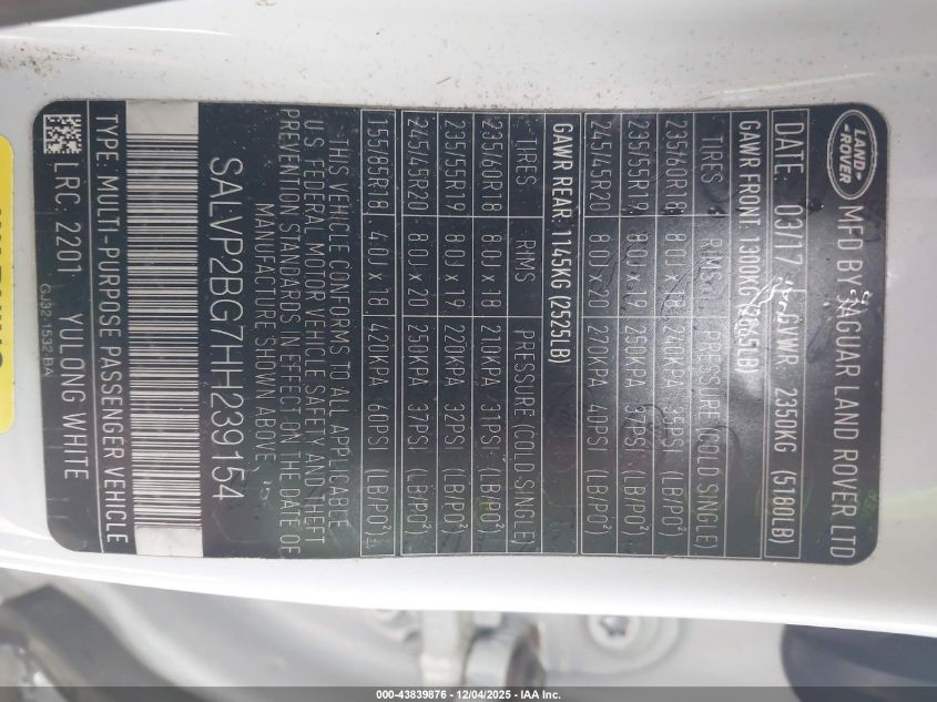 2017 LAND ROVER RANGE ROVER EVOQUE 2017 року Бензин, 2.0, Повний привід, vin - SALVP2BG7HH239154 з США