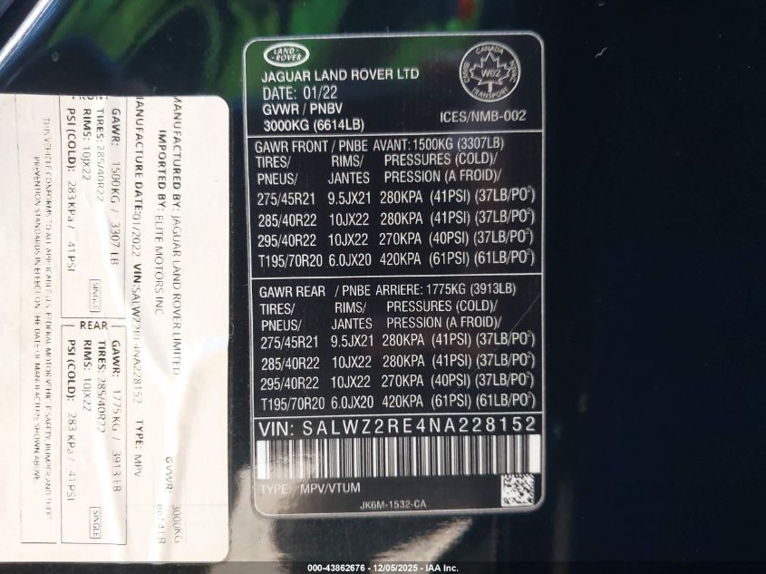 Колір ЧорнийЦиліндри 8Привід Повний привідVIN SALWZ2RE4NA228152Стан Заводиться та їде (перевірено)Ушкодження Права сторона AutoRIA