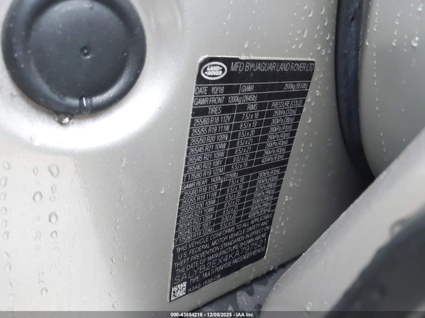 2019 LAND ROVER RANGE ROVER VELAR 2019 року Бензин, 2.0, Повний привід, vin - SALYB2EX4KA797521 з США