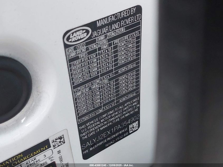 2023 LAND ROVER RANGE ROVER VELAR 2023 року Бензин, 2.0, Повний привід, vin - SALYJ2EX1PA354902 з США