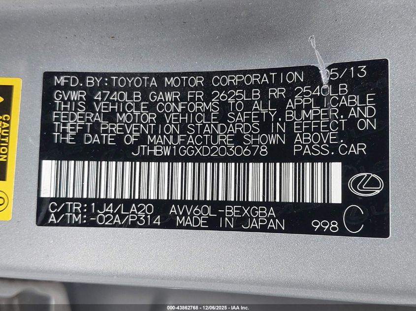 2013 LEXUS ES 300H