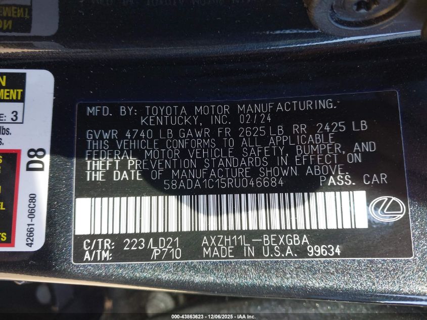 2024 LEXUS ES 300H 2024 року Гібрид, 2.5, Передній привід, vin - 58ADA1C15RU046684 з США
