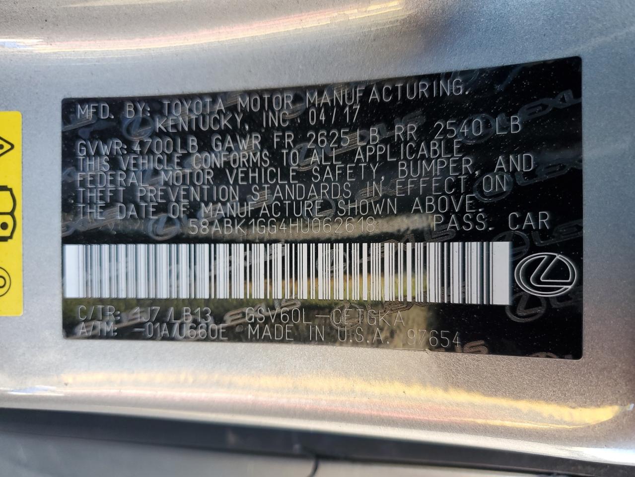 2017 LEXUS ES 350 2017 року Бензин, 3.5, , vin - 58ABK1GG4HU062618 з США