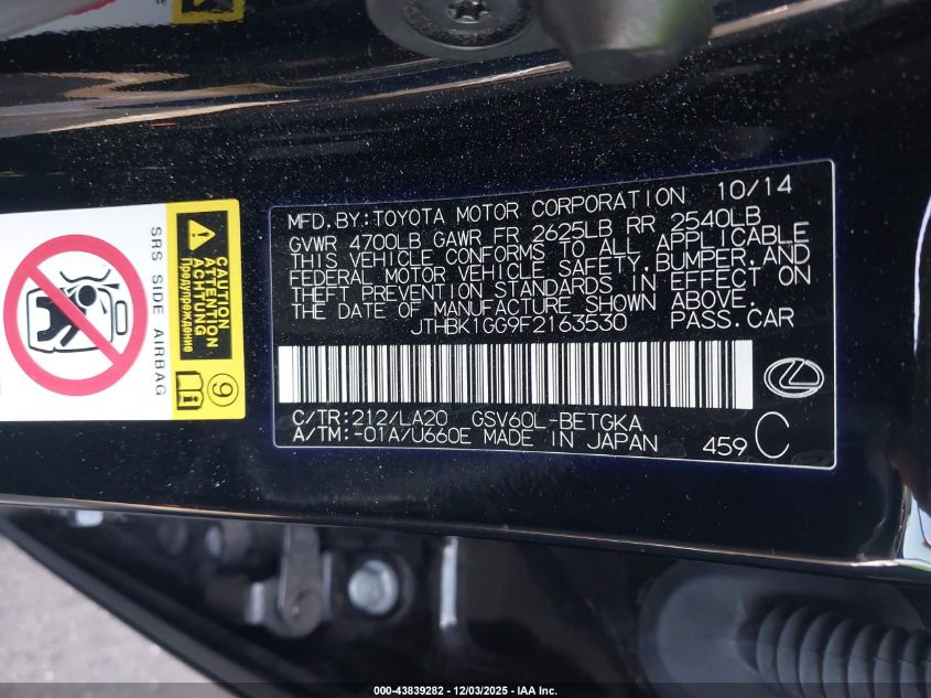 2015 LEXUS ES 350 2015 року Бензин, 3.5, Передній привід, vin - JTHBK1GG9F2163530 з США