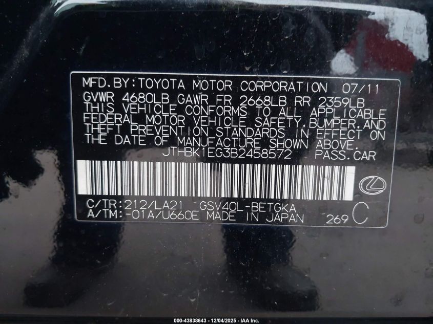 2011 LEXUS ES 350