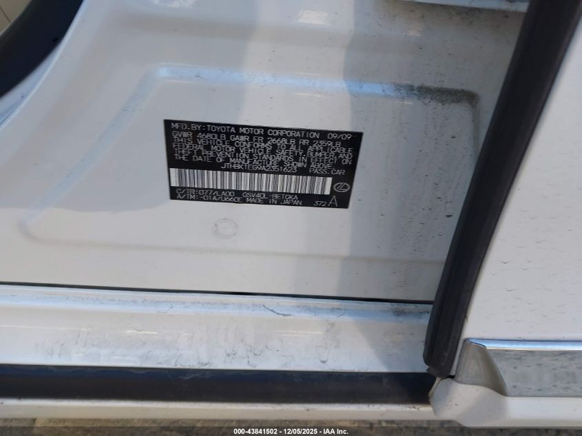 2010 LEXUS ES 350 2010 року Бензин, 3.5, Передній привід, vin - JTHBK1EG9A2351623 з США