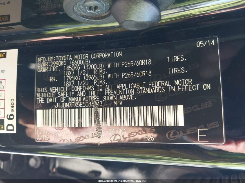 2014 LEXUS GX 460 2014 року Бензин, 4.6, Повний привід, vin - JTJBM7FX5E5084043 з США