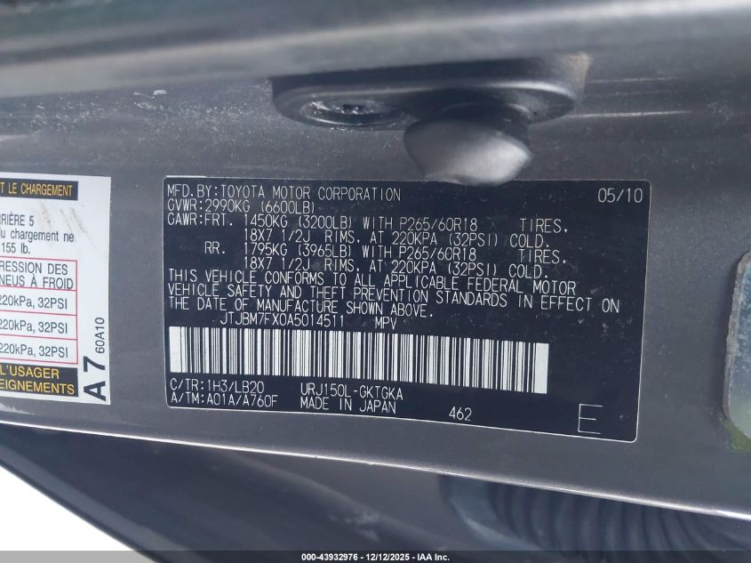 2010 LEXUS GX 460 2010 року Бензин, 4.6, Повний привід, vin - JTJBM7FX0A5014511 з США