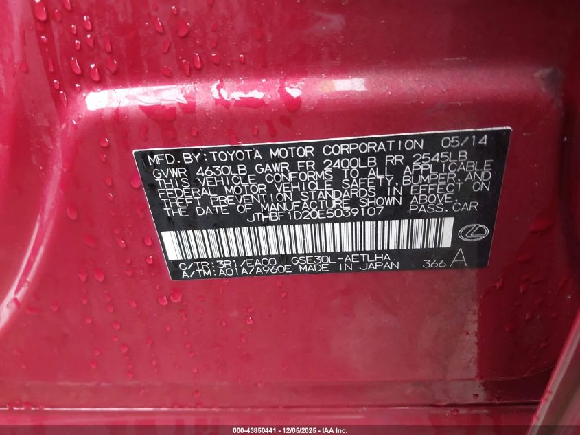 2014 LEXUS IS 250 2014 року Бензин, 2.5, Задній привід, vin - JTHBF1D20E5039107 з США