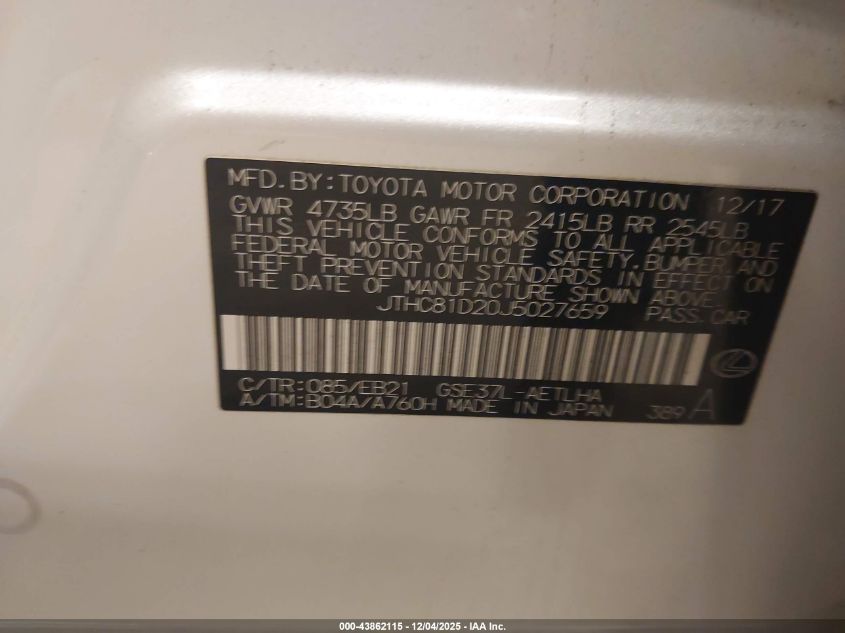 2018 LEXUS IS 300 2018 року Бензин, 3.5, Повний привід, vin - JTHC81D20J5027659 з США