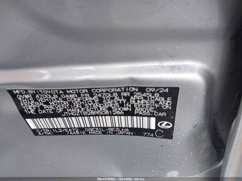 2024 LEXUS IS 350 2024 року Бензин, 3.5, Задній привід, vin - JTHGZ1B28R5081286 з США