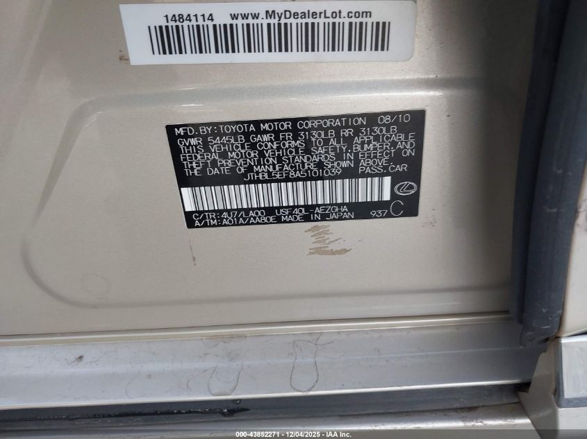 Колір ЗагарЦиліндри 8Привід Задній привідVIN JTHBL5EF8A5101039Стан Заводиться та їде (перевірено)Ушкодження Ліва сторона AutoRIA
