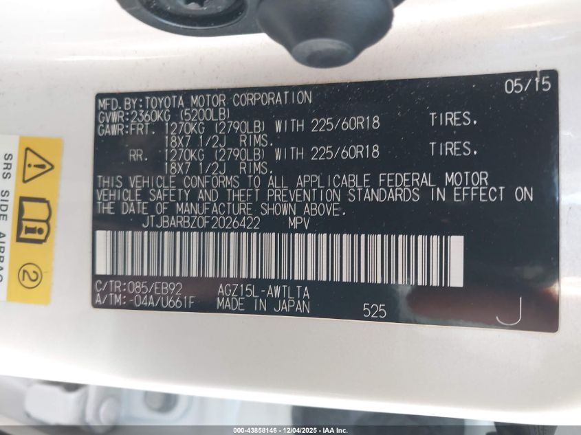 Колір БілийЦиліндри 4Привід Повний привідVIN JTJBARBZ0F2026422Стан Заводиться та їде (перевірено)Ушкодження Передня або задня AutoRIA