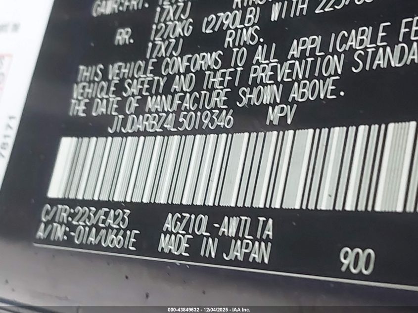 Колір ЧорнийЦиліндри 4Привід Передній привідVIN JTJDARBZ4L5019346Стан СтаціонарноУшкодження Перекидання AutoRIA
