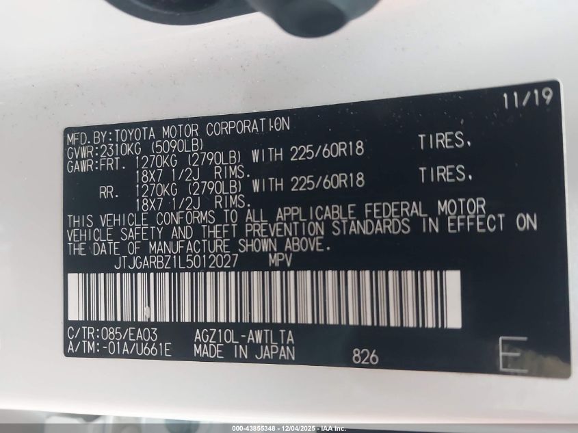 Колір БілийЦиліндри 4Привід Передній привідVIN JTJGARBZ1L5012027Стан СтаціонарноУшкодження Передня або задня AutoRIA