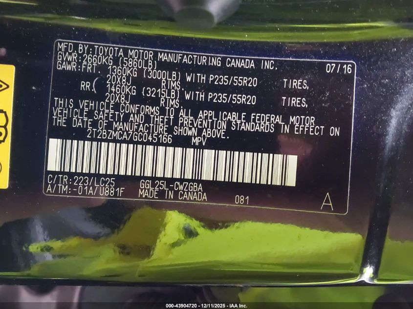 2016 LEXUS RX 350 BASE