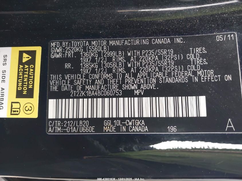 Колір ЧорнийЦиліндри 6Привід Передній привідVIN 2T2ZK1BA4BC060753Стан ЗаводитьсяУшкодження Передня або задня AutoRIA