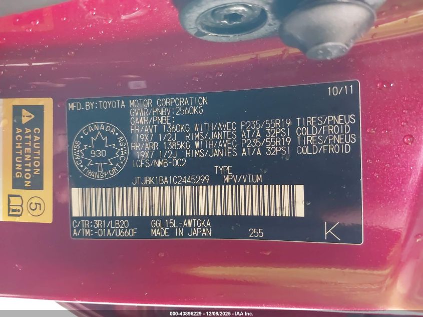 Колір ЧервонийЦиліндри 6Привід Повний привідVIN JTJBK1BA1C2445299Стан СтаціонарноУшкодження Передня або задня AutoRIA