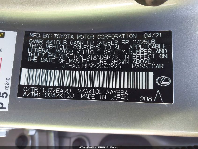 2021 LEXUS UX 200