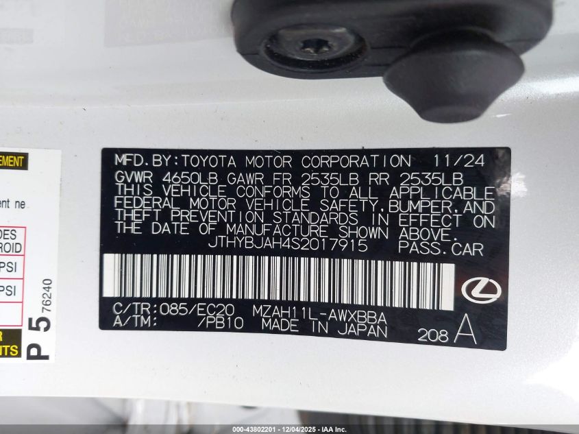 2025 LEXUS UX 2025 року Гібрид, 2.0, Передній привід, vin - JTHYBJAH4S2017915 з США