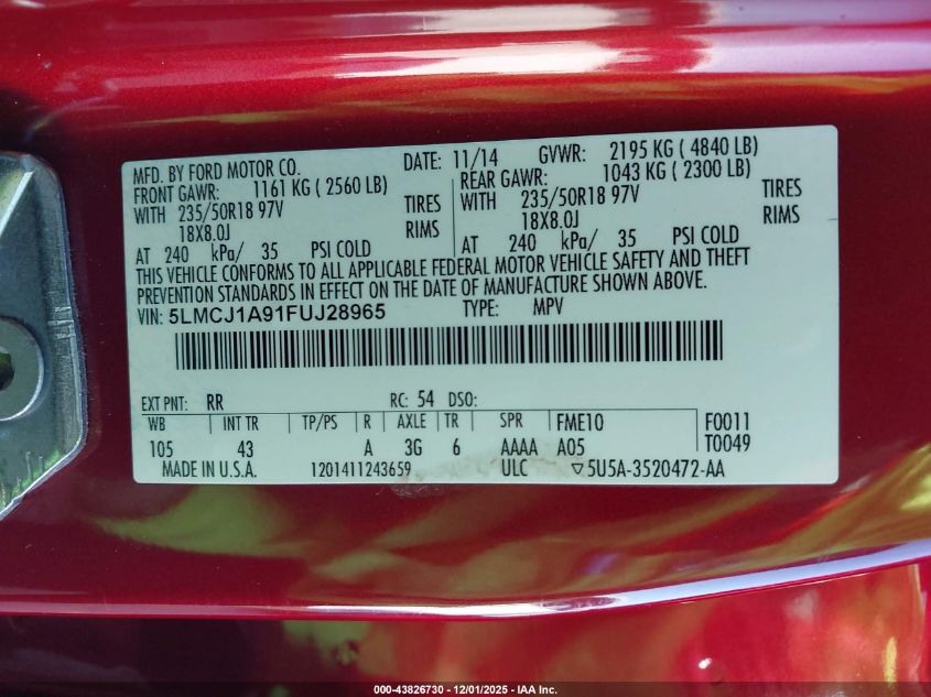 2015 LINCOLN MKC 2015 року Бензин, 2.0, Передній привід, vin - 5LMCJ1A91FUJ28965 з США