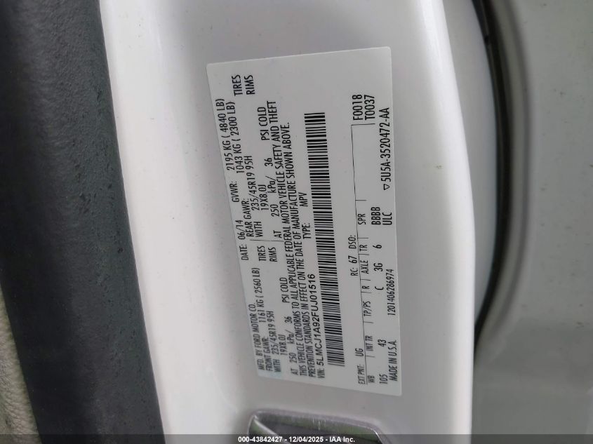 2015 LINCOLN MKC 2015 року Бензин, 2.0, Передній привід, vin - 5LMCJ1A92FUJ01516 з США