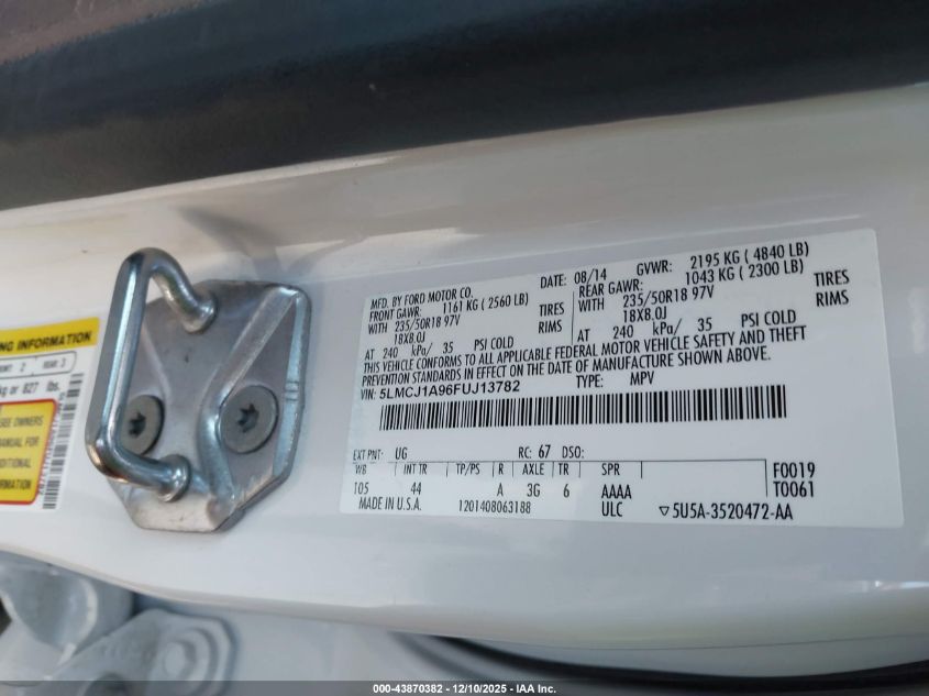 2015 LINCOLN MKC 2015 року Бензин, 2.0, Передній привід, vin - 5LMCJ1A96FUJ13782 з США
