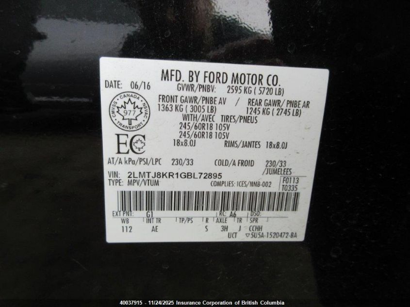 Колір ЧорнийЦиліндри 6Привід Повний привідVIN 2LMTJ8KR1GBL72895Стан СтаціонарноУшкодження ЗадняДата аукціону 2025-12-08
