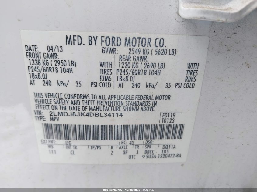 2013 LINCOLN MKX 2013 року Бензин, 3.7, Повний привід, vin - 2LMDJ8JK4DBL34114 з США