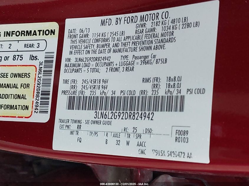 2013 LINCOLN MKZ 2013 року Бензин, 2.0, Передній привід, vin - 3LN6L2G92DR824942 з США