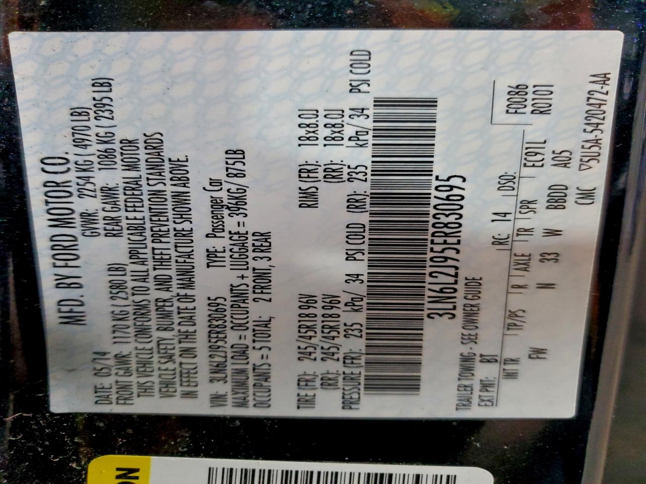 2014 LINCOLN MKZ