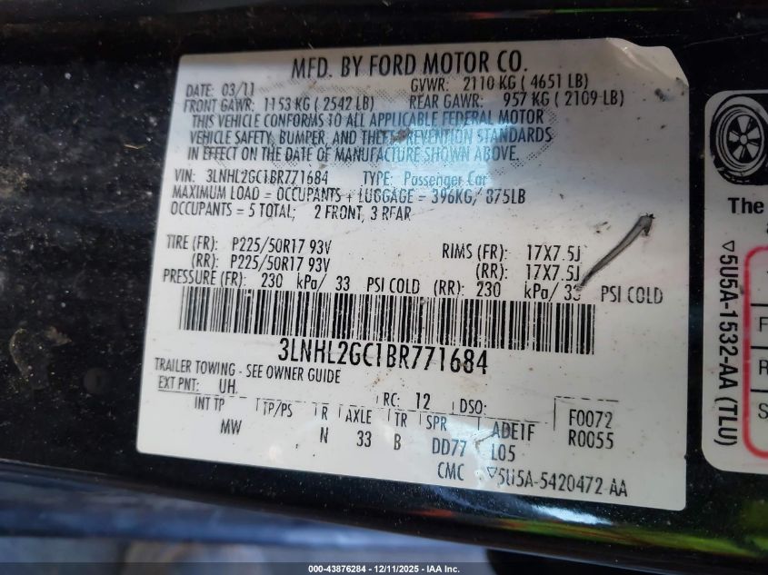 2011 LINCOLN MKZ 2011 року Бензин, 3.5, Передній привід, vin - 3LNHL2GC1BR771684 з США