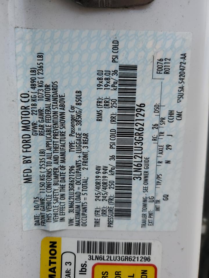 2016 LINCOLN MKZ 2016 року Гібрид, 2.0, , vin - 3LN6L2LU3GR621296 з США