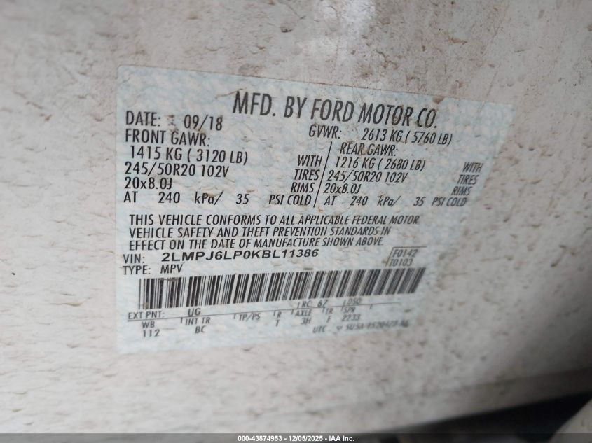 2019 LINCOLN NAUTILUS 2019 року Бензин, 2.7, Передній привід, vin - 2LMPJ6LP0KBL11386 з США